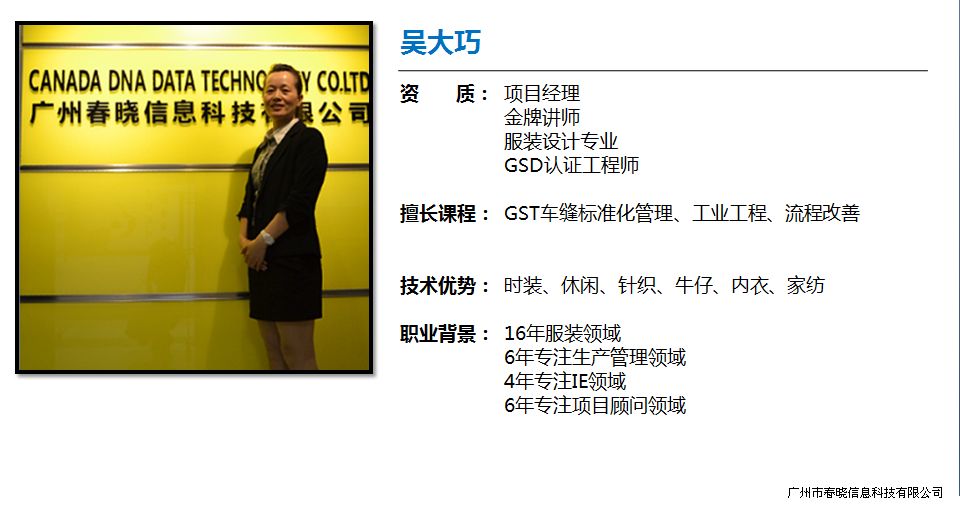 而且,这套系统本身所具备的无可比拟的优点也保证了它的可行性: ,这套系统吸收了原来英国科学的,先进的精华部分,经过了专家的严格论证,从而使时间的设立纳入了标准的技术因素,具有相当的可靠性。第二,它是建立在作业动作动素化、动素时间标准化的基础上,避免了以往现场测时所带来的人为因素的误差,使得工序时间更为准确,做到单价更为公平、合理。第三,它在原有的基础上进一步改善了作业方法和动作,使浮余进一步减少,从而使效率得到大限度的提高。第四,它是专业人士为缝制设计的一套很好的车缝培训教材,可以帮助员工提高车缝水平。第五,GST对于我们来讲更易于学习和接受,它的代码采取的是中文简称的首写字母。由此看来,这种即保障员工收入的公平、合理,又能提高我们员工整体技术水平的贤举良措,我们又有什么理由不去信任它,支持它呢?
